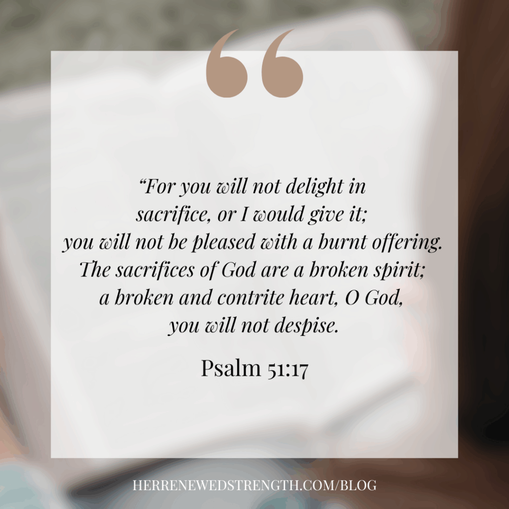“For you will not delight in sacrifice, or I would give it; you will not be pleased with a burnt offering.