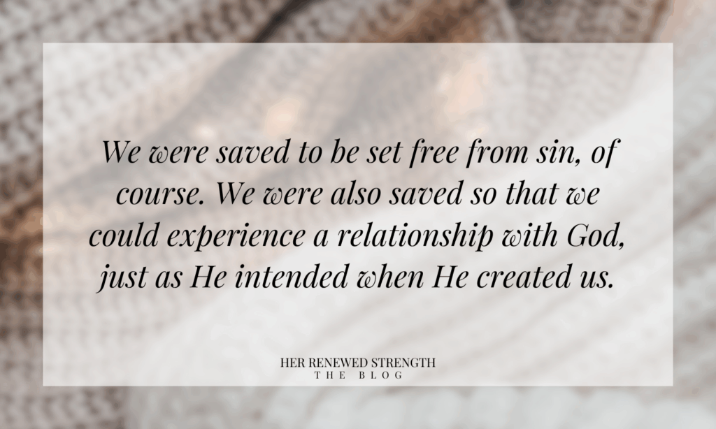 We were saved to be set free from sin, of course. We were also saved so that we could experience a relationship with God, just as He intended when He created us. God gave us freewill, and that freewill affords us the freedom to say yes or no to Him. In this freewill, we choose to love God through our willingness to obey, or we choose to disobey by loving ourselves more.